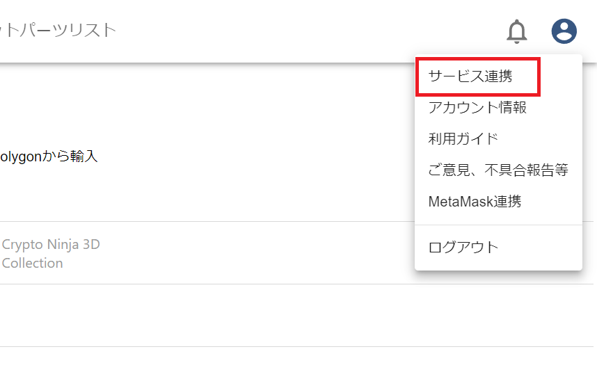 DC3マイルームにログイン後に、画面右上にあるアカウントアイコンを押下し、[サービス連携]を押下します。