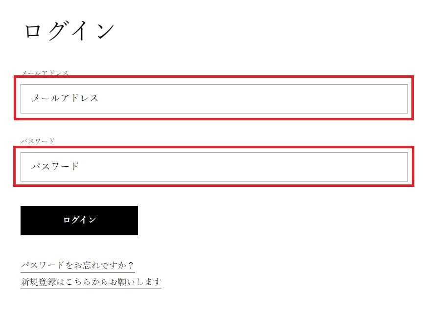 ご登録されたメールアドレスとパスワードを入力し、[ログイン]ボタンを押下します。