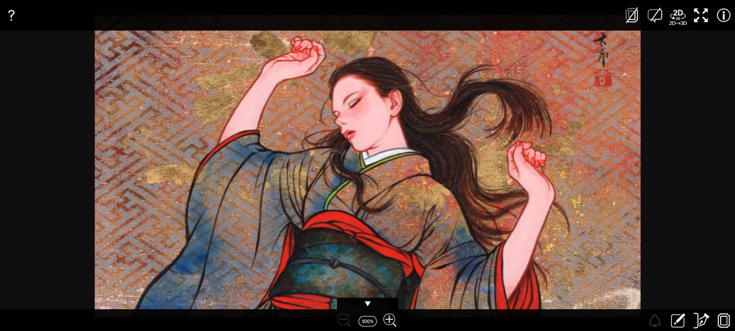 コンテンツ一覧から再生したいDC3コンテンツをクリック(タップ)すると、自動的にブラウザ上でプレイヤーが起動します。カンバス原画の布目や睫毛の一筆まで楽しんでいただくことができます。